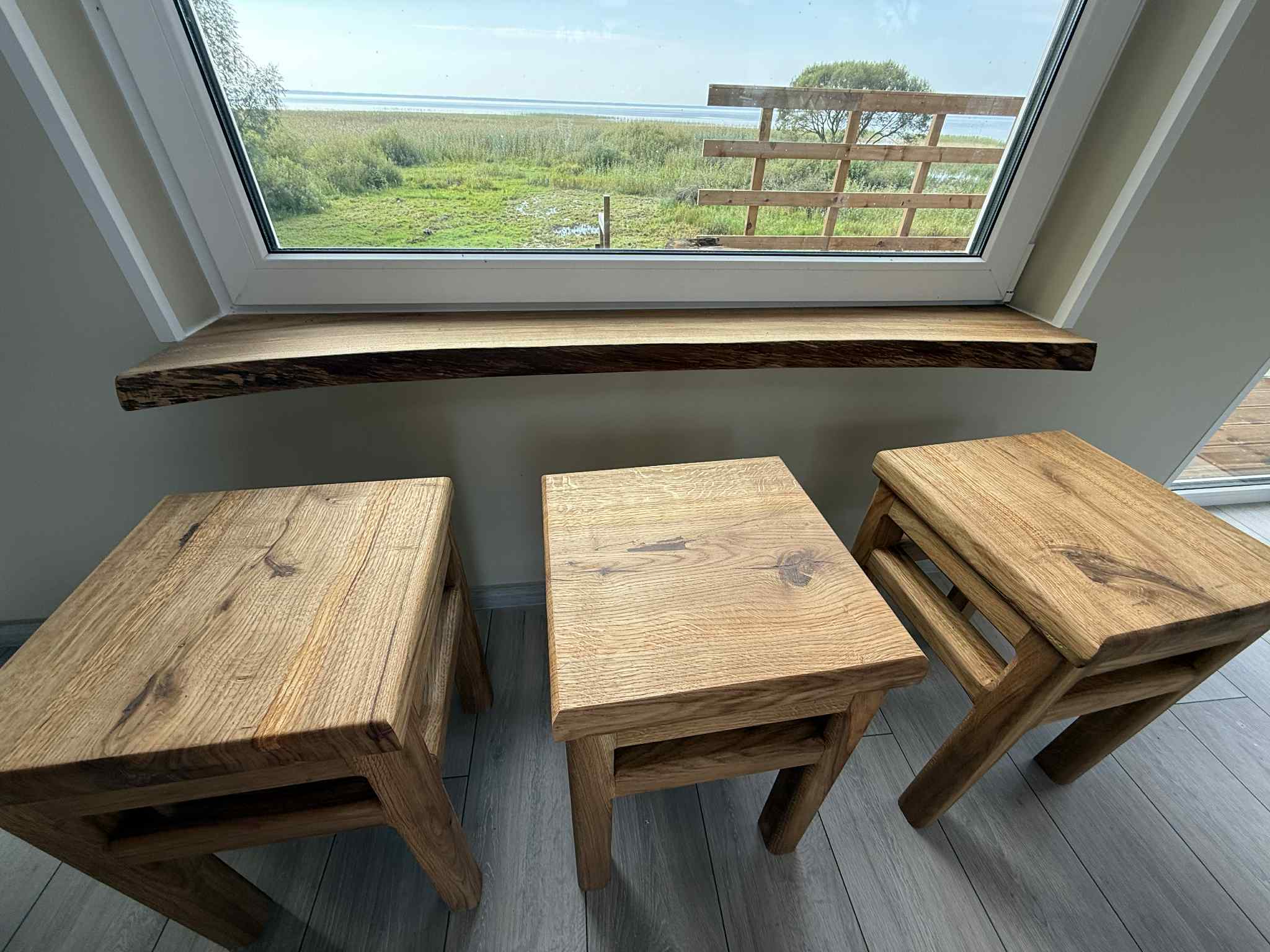 Nii on ühest tammest saanud kodu, kus iga ese jutustab oma lugu – alates suurest söögilauast kuni väikese detailini aias. Ja hiljuti tõi Ülle osa tamme tagasi meie tisleritöökotta, soovides sellest veel uusi esemeid. See tähendab, et puit ei sünni mitte ainult üheks mööbliks, vaid saab kodus uusi ja uusi kasutusi, igaüks oma tähenduse ja looga.